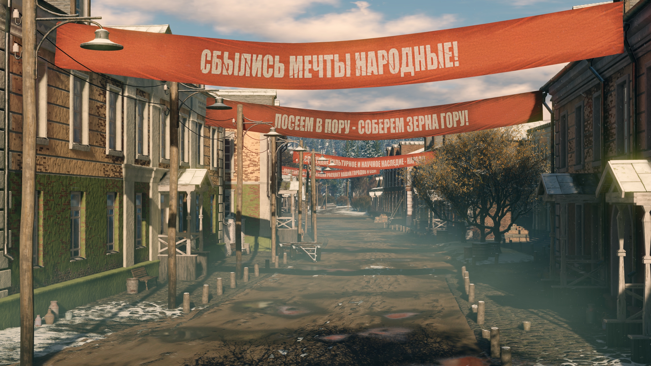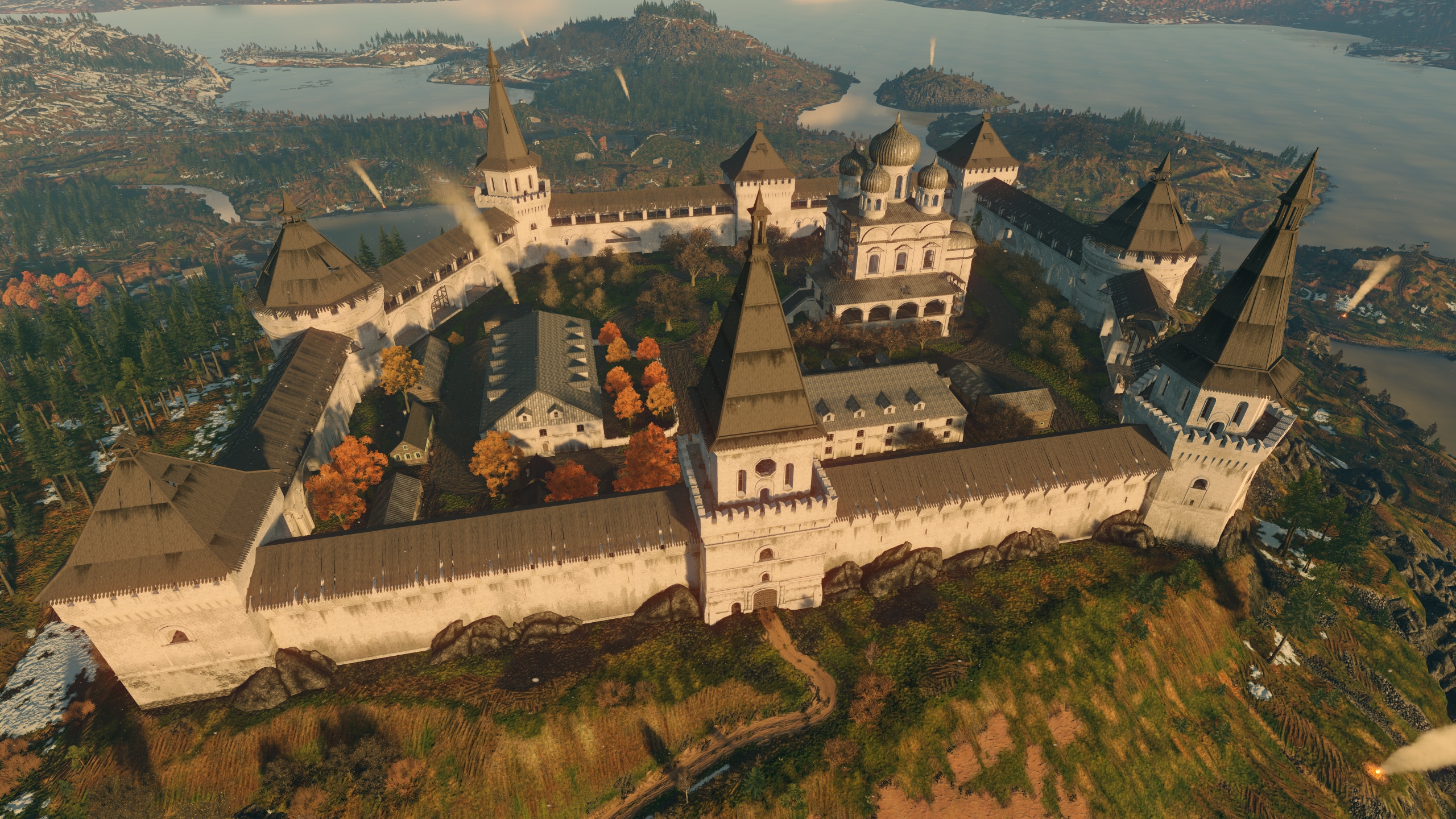 Buildings are quite diverse. Ramshackle fishermen villages on the shores contrast the rather modern settlements of soviet construction. Most risk-ready champions can explore a large white-stone monastery, and for the more cautious warrior there are numerous cabins, huts, and trenches. There are also some powerful USSR heritage war machines: concrete pillboxes, large hangars, and secret underground tunnels leading to the abandoned missile silo of an old military base. As well as the old infamous labor camps of Siblag.
